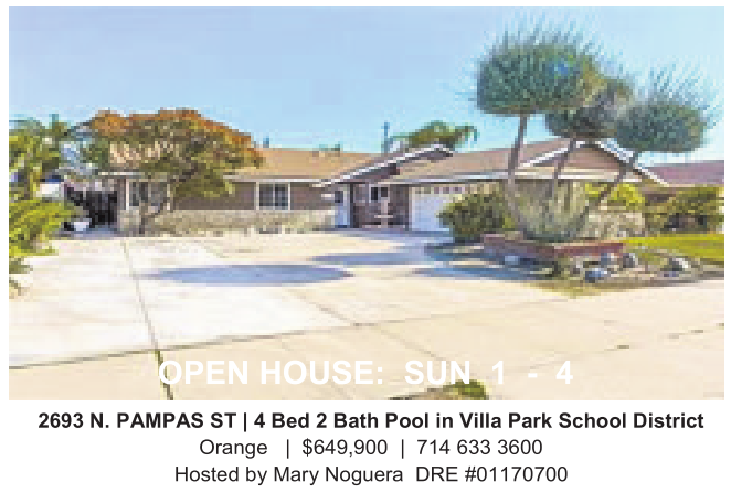 2693 N.PAMPAS ST|4Bed 2Bath Pool inVilla Park School District Orange | $649,900 | 714 633 3600 Hosted by Mary Noguera DRE #01170700