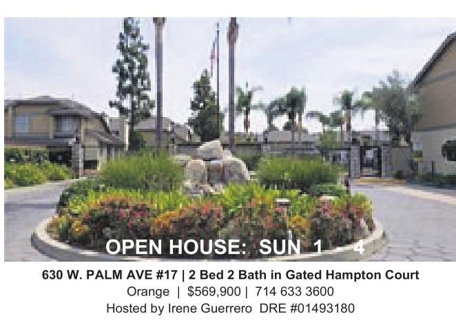 630 W. PALM AVE #17 |2Bed 2Bath inGated Hampton Court Orange | $569,900 | 714 633 3600 Hosted by Irene Guerrero DRE #01493180