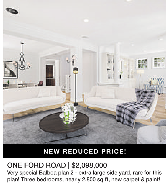 ONE FORD ROAD | $2,098,000 Very special Balboa plan 2 - extra large side yard, rare for this plan! Three bedrooms, nearly 2,800 sq ft, new carpet & paint!