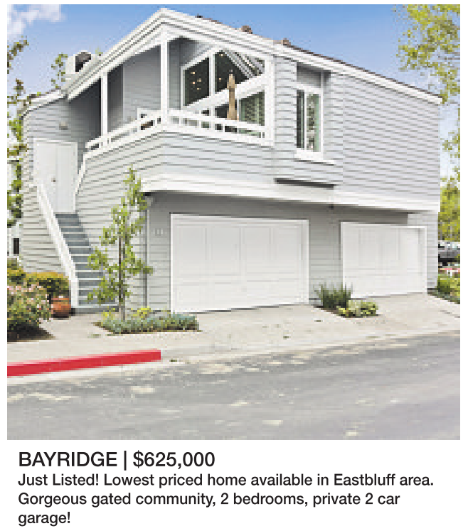 BAYRIDGE | $625,000 Just Listed! Lowest priced home available in Eastbluff area. Gorgeous gated community, 2 bedrooms, private 2 car garage!