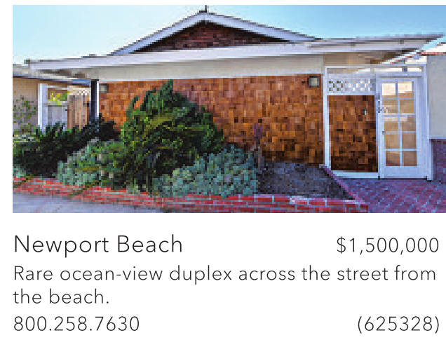Newport Beach $1,500,000 Rare ocean-view duplex across the street from the beach.