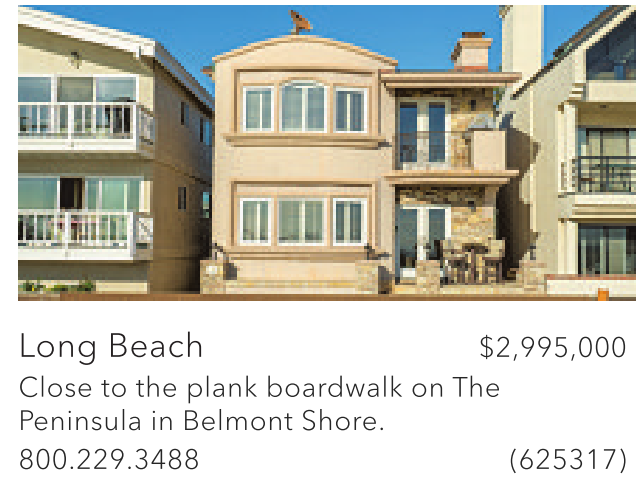 Long Beach $2,995,000 Close to the plank boardwalk on The Peninsula in Belmont Shore.