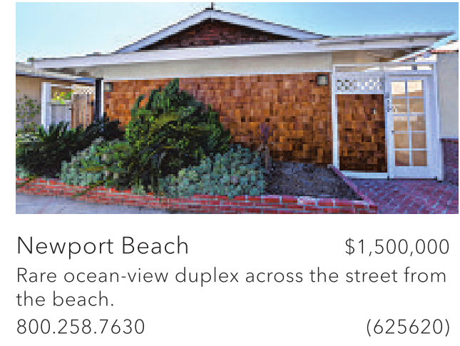 Newport Beach $1,500,000 Rare ocean-view duplex across the street from the beach.
