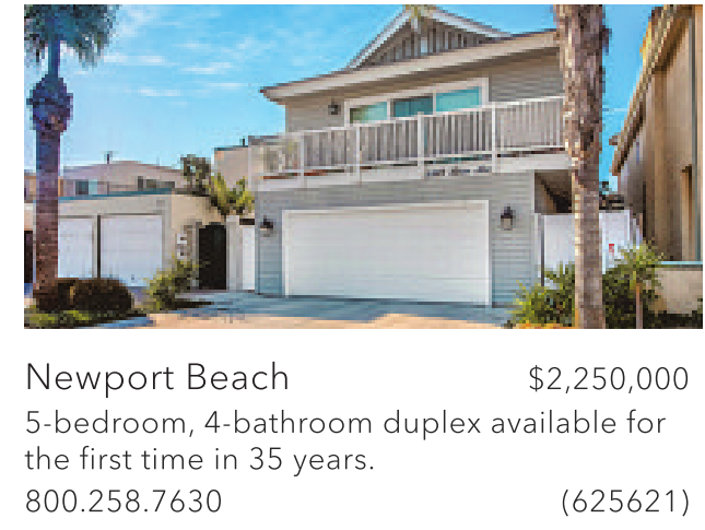 Newport Beach $2,250,000 5-bedroom, 4-bathroom duplex available for the first time in 35 years.