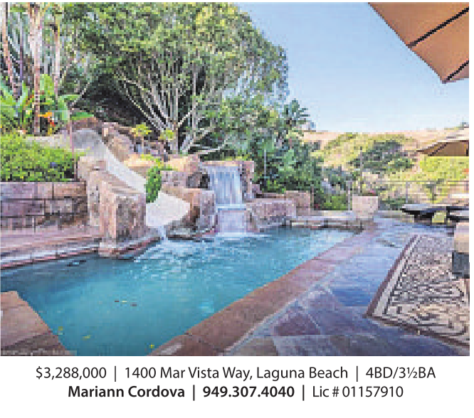 $3,288,000 | 1400 MarVista Way, Laguna Beach | 4BD/3½BA Mariann Cordova | 949.307.4040 | Lic #01157910