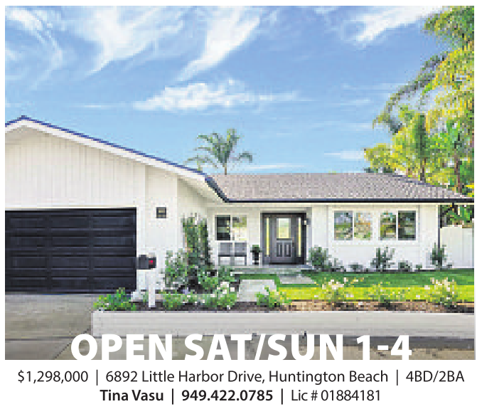 $1,298,000 | 6892 Little Harbor Drive, Huntington Beach | 4BD/2BA Tina Vasu | 949.422.0785 | Lic #01884181
