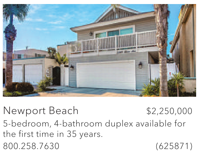 Newport Beach $2,250,000 5-bedroom, 4-bathroom duplex available for the first time in 35 years.