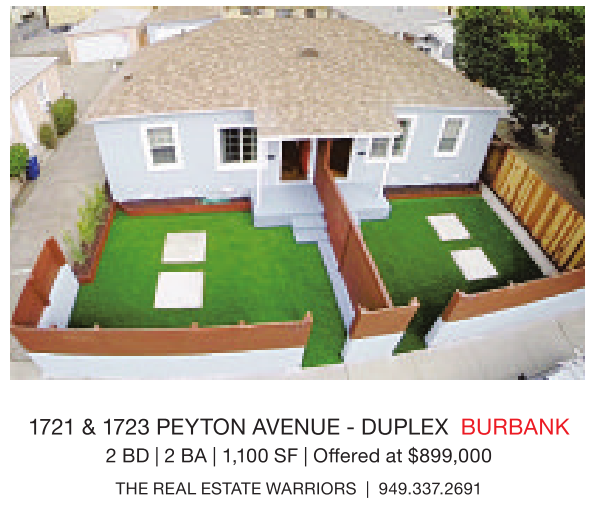 1721 & 1723 PEYTON AVENUE - DUPLEX BURBANK 2BD|2BA |1,100 SF |Offered at $899,000