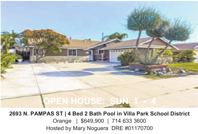 2693 N.PAMPAS ST|4Bed 2Bath Pool in Villa Park School District Orange | $649,900 | 714 633 3600 Hosted by Mary Noguera DRE #01170700