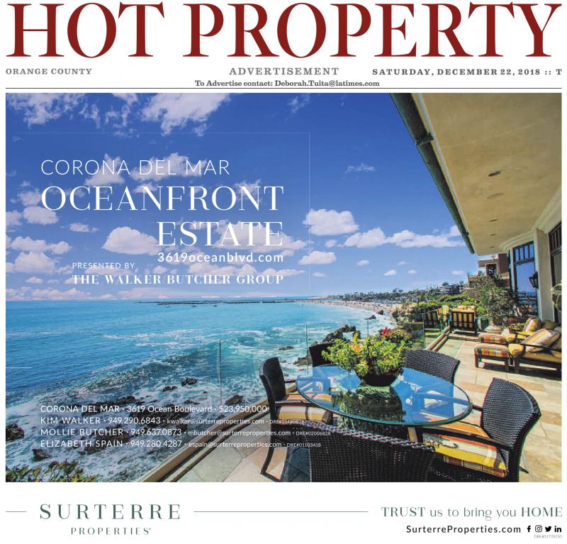 To Advertise contact: Deborah.Tuita@latimes.com SATURDAY, DECEMBER 22, 2018 :: T CORONA DEL MAR O C E A N F RON T E S TAT E 3619oceanblvd.com PRESENTED BY THE WA LKER/BUTCHER GROUP CORONA DEL MAR · 3619 Ocean Boulevard · $23,950,000 KIM WALKER 949.290.6843 · · DRE#01480826 MOLLIE BUTCHER 949.637.0873 · · DRE#02006828 ELIZABETH SPAIN 949.280.4287 · · DRE#01103418 SurterreProperties.com DRE#01778230