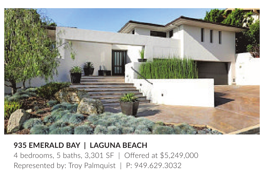 935 EMERALD BAY | LAGUNA BEACH 4 bedrooms, 5 baths, 3,301 SF | Offered at $5,249,000 Represented by: Troy Palmquist | P: 949.629.3032