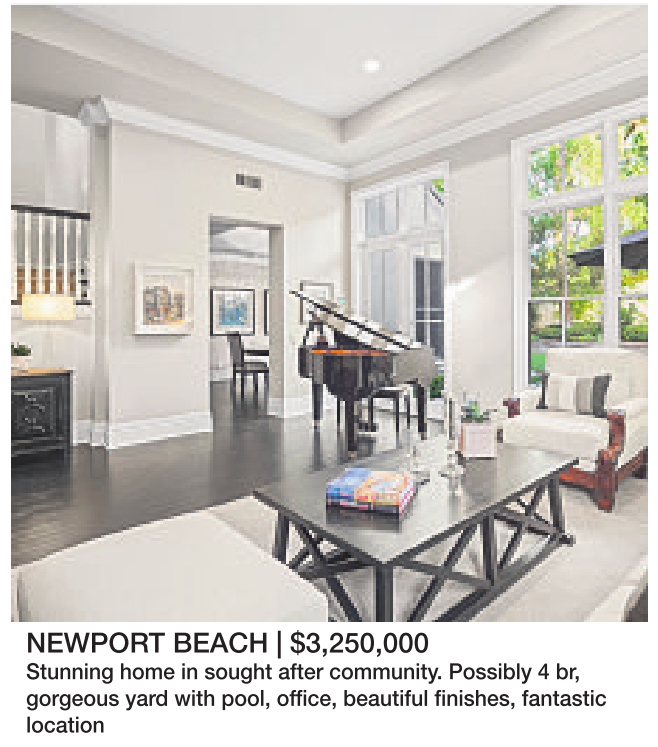 NEWPORT BEACH | $3,250,000 Stunning home in sought after community. Possibly 4 br, gorgeous yard with pool, office, beautiful finishes, fantastic location
