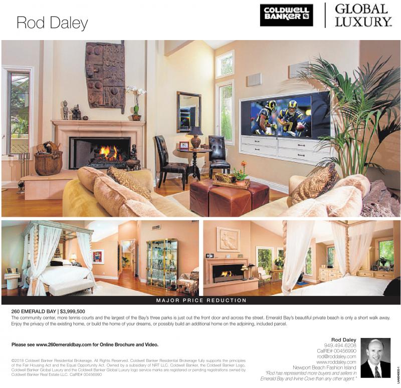 Rod Daley M A J O R P R I C E R E D U C T I O N 260 EMERALD BAY | $3,999,500 The community center, more tennis courts and the largest of the Bay’s three parks is just out the front door and across the street. Emerald Bay’s beautiful private beach is only a short walk away. Enjoy the privacy of the existing home, or build the home of your dreams, or possibly build an additional home on the adjoining, included parcel. Please see www.260emeraldbay.com for Online Brochure and Video. ©2018 Coldwell Banker Residential Brokerage. All Rights Reserved. Coldwell Banker Residential Brokerage fully supports the principles of the Fair Housing Act and the Equal Opportunity Act. Owned by a subsidiary of NRT LLC. Coldwell Banker, the Coldwell Banker Logo, Coldwell Banker Global Luxury and the Coldwell Banker Global Luxury logo service marks are registered or pending registrations owned by Coldwell Banker Real Estate LLC. CalRE# 00456990 Rod Daley 949.494.6208 CalRE# 00456990 rod@roddaley.com www.roddaley.com Newport Beach Fashion Island “Rod has represented more buyers and sellers in Emerald Bay and Irvine Cove than any other agent.”