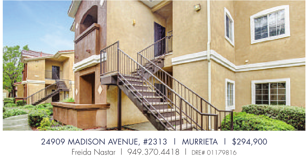 24909 MADISON AVENUE, #2313 | MURRIETA | $294,900 Freida Nastar | 949.370.4418 | DRE# 01179816