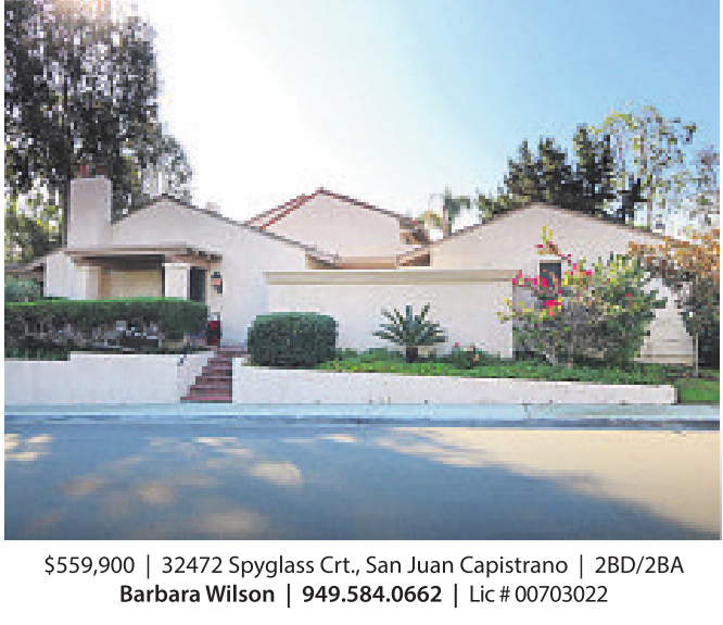 $559,900 | 32472 Spyglass Crt., San Juan Capistrano | 2BD/2BA BarbaraWilson | 949.584.0662 | Lic #00703022