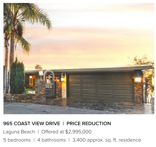965 COAST VIEW DRIVE | PRICE REDUCTION Laguna Beach | Offered at $2,995,000 5 bedrooms | 4 bathrooms | 3,400 approx. sq. ft. residence