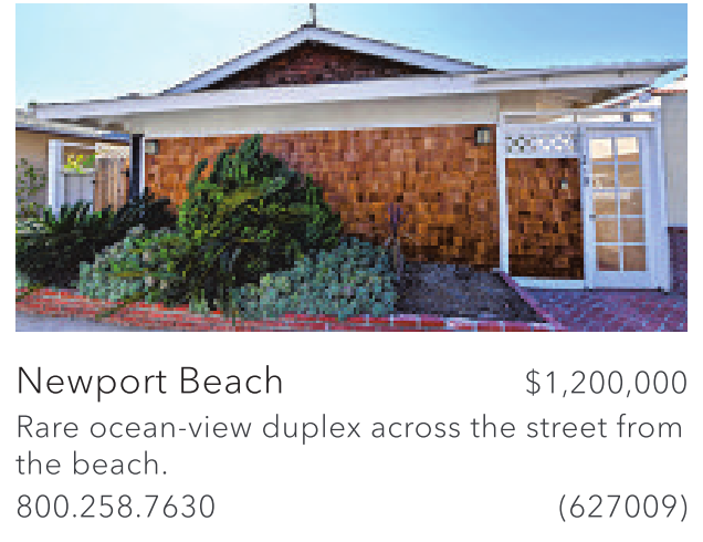 Newport Beach $1,200,000 Rare ocean-view duplex across the street from the beach.