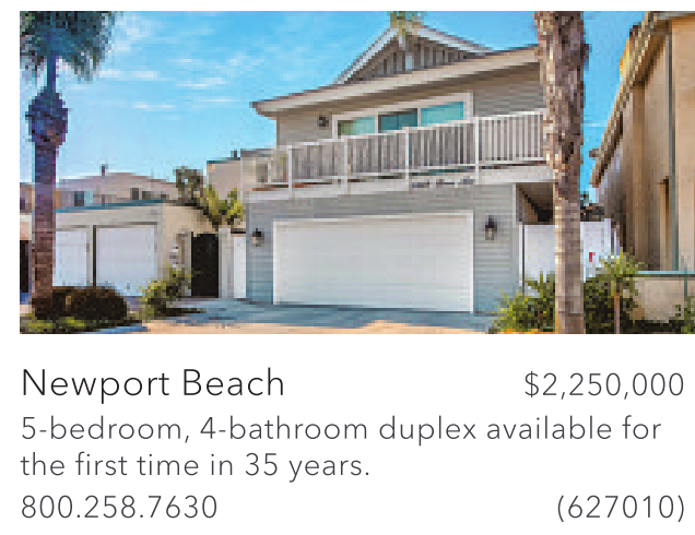 Newport Beach $2,250,000 5-bedroom, 4-bathroom duplex available for the first time in 35 years.