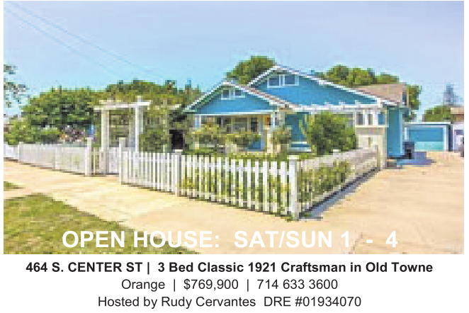 464 S.CENTER ST| 3Bed Classic 1921 Craftsman inOld Towne Orange | $769,900 | 714 633 3600 Hosted by Rudy Cervantes DRE #01934070