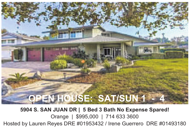 Orange | $995,000 | 714 633 3600 Hosted by Lauren Reyes DRE #01953432 /Irene Guerrero DRE #01493180