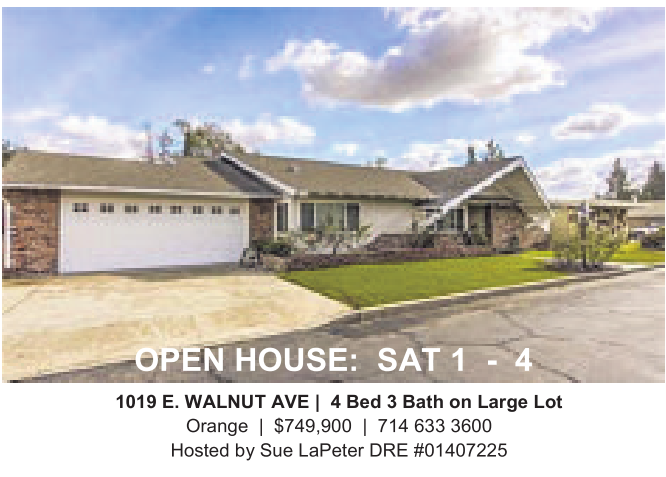 1019 E.WALNUT AVE | 4 Bed 3Bath on Large Lot Orange | $749,900 | 714 633 3600 Hosted by Sue LaPeter DRE #01407225