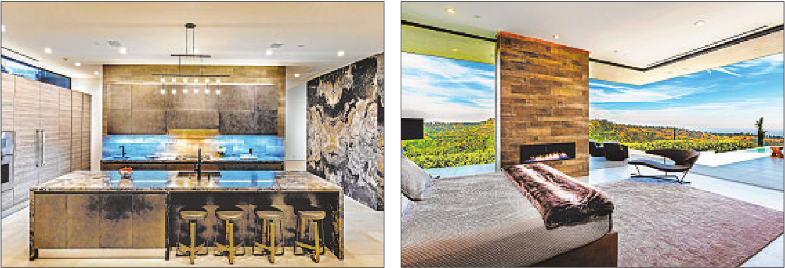 Features: Fleetwood doors; high ceilings; skylights; custom Italian kitchen; 700-bottle wine storage; hidden theater room; two master suites with fireplaces; swimming pool and spa