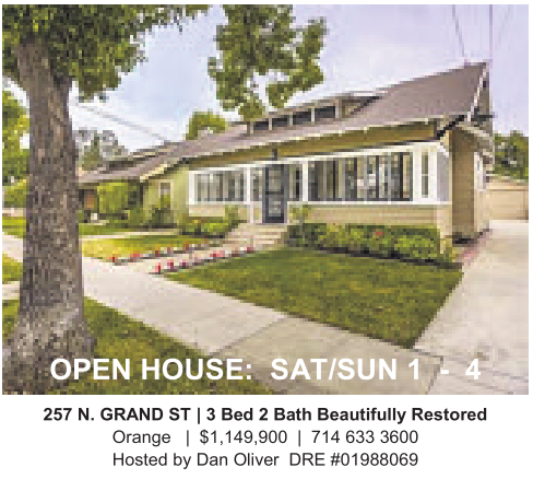 257 N. GRAND ST |3Bed 2Bath Beautifully Restored Orange | $1,149,900 | 714 633 3600 Hosted byDan Oliver DRE #01988069