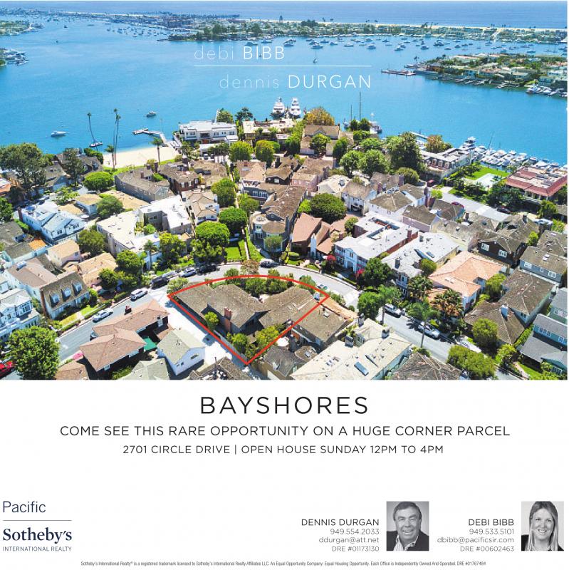 d e b i B I B B d e n n i s D U R G A N B AYS H O R E S COME SEE THIS RARE OPPORTUNITY ON A HUGE CORNER PARCEL 2701 CIRCLE DRIVE | OPEN HOUSE SUNDAY 12PM TO 4PM DENNIS DURGAN 949.554.2033 ddurgan@att.net DRE #01173130 DEBI BIBB 949.533.5101 dbibb@pacificsir.com DRE #00602463 Sotheby’s International Realty ® is aregistered trademark licensed to Sotheby’s International Realty AffiliatesLLC. An Equal Opportunity Company. Equal HousingOpportunity.Each Office is IndependentlyOwned And Operated. DRE #01767484
