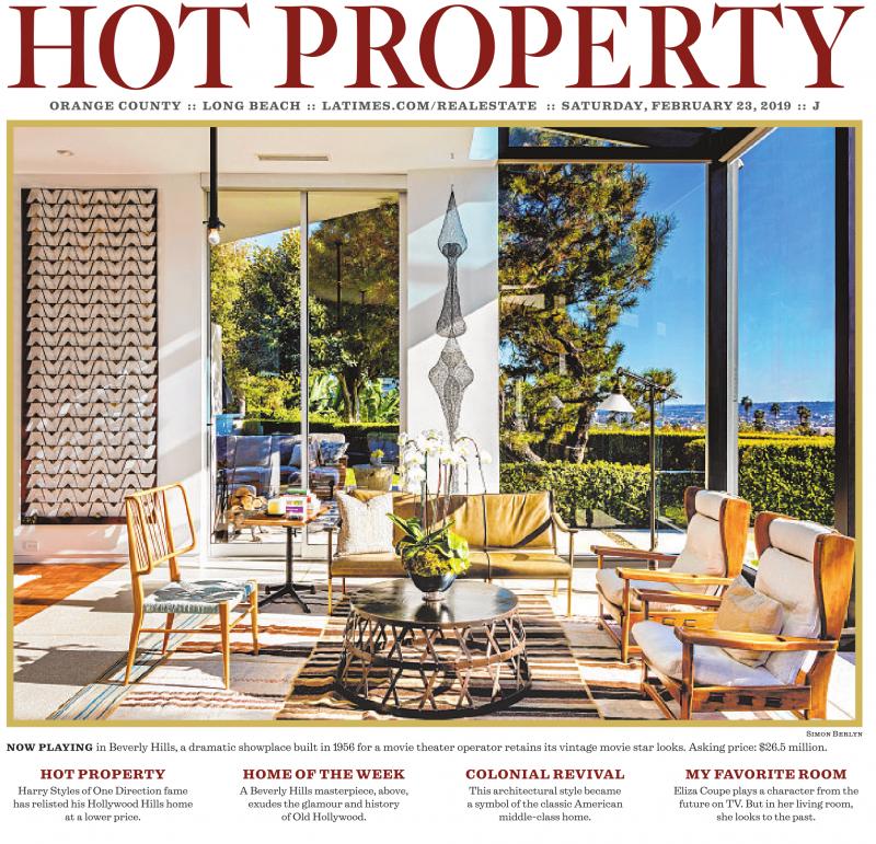 HOT PROPERT Y ORANGE COUNTY :: LONG BEACH :: LATIMES.COM/REALESTATE :: SATURDAY, FEBRUARY 23, 2019 :: J NOW PLAYING in Beverly Hills, a dramatic showplace built in 1956 for a movie theater operator retains its vintage movie star looks. Asking price: $26.5 million. Simon Berlyn HOT PROPERTY Harry Styles of One Direction fame has relisted his Hollywood Hills home at a lower price. HOME OF THE WEEK A Beverly Hills masterpiece, above, exudes the glamour and history of Old Hollywood. COLONIAL REVIVAL This architectural style became a symbol of the classic American middle-class home. MY FAVORITE ROOM Eliza Coupe plays a character from the future on TV. But in her living room, she looks to the past.