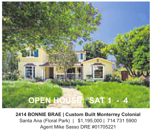 2414 BONNIE BRAE |Custom Built Monterrey Colonial Santa Ana (Floral Park) | $1,195,000 | 714 731 5900 Agent Mike Sasso DRE #01705221