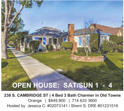238 S. CAMBRIDGE ST |4Bed 3Bath Charmer in Old Towne Orange | $849,900 | 714 633 3600 Hosted by Jessica C. #02073141 /Sherri S. DRE #01231516