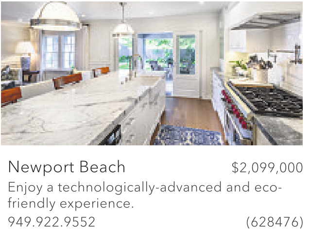 Newport Beach $2,099,000 Enjoy a technologically-advanced and ecofriendly experience.