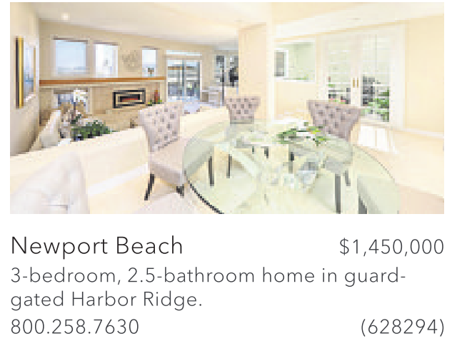 Newport Beach $1,450,000 3-bedroom, 2.5-bathroom home in guardgated Harbor Ridge.