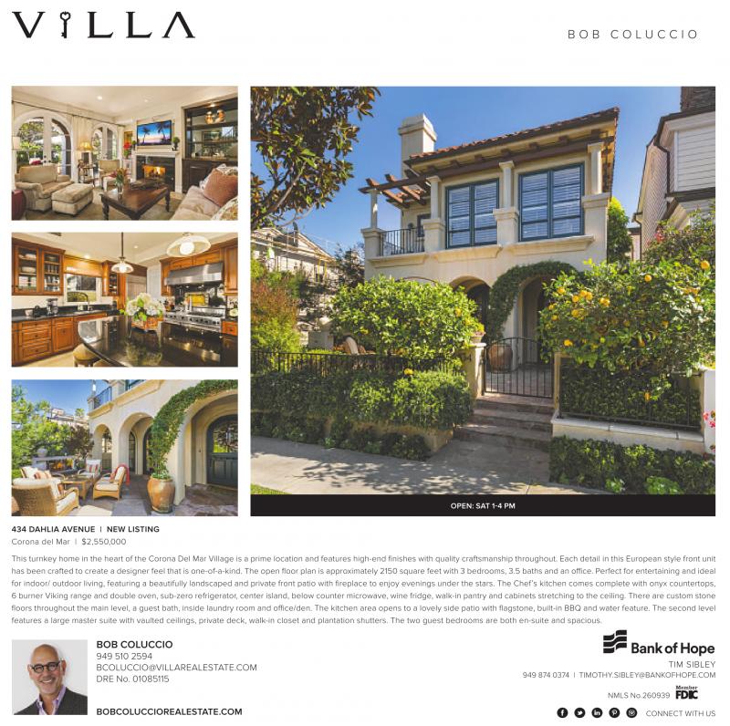 BOB COLUCCIO 949 510 2594 BCOLUCCIO@VILLAREALESTATE.COM DRE No. 01085115