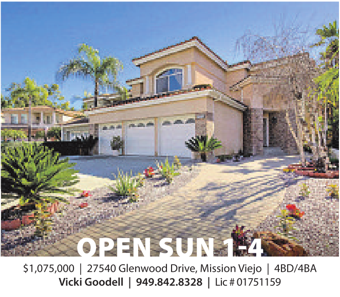 $1,075,000 | 27540 Glenwood Drive, Mission Viejo | 4BD/4BA VickiGoodell | 949.842.8328 | Lic #01751159