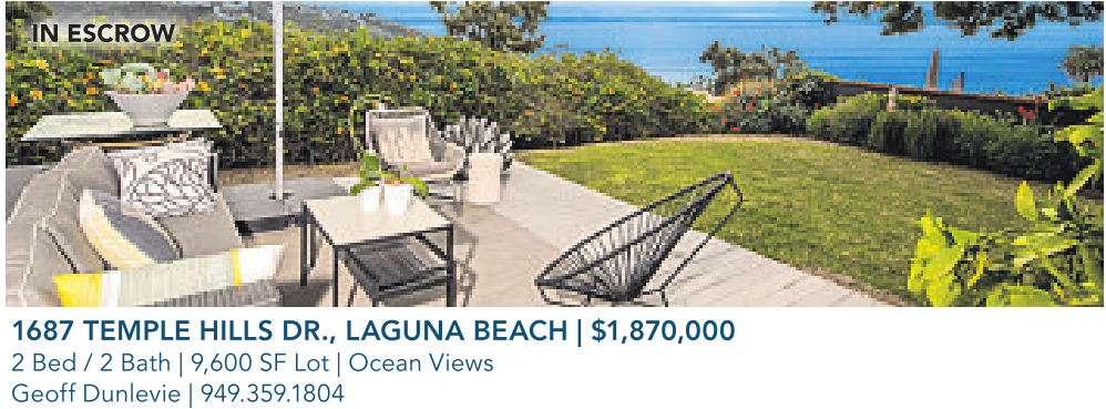 1687 TEMPLE HILLS DR., LAGUNA BEACH | $1,870,000 2 Bed / 2 Bath | 9,600 SF Lot | Ocean Views Geoff Dunlevie | 949.359.1804