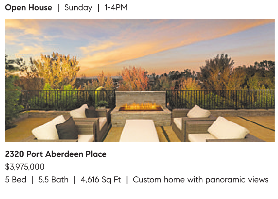 2320 Port Aberdeen Place $3,975,000 5 Bed | 5.5 Bath | 4,616 Sq Ft | Custom home with panoramic views