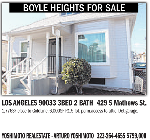 YOSHIMOTO REALESTATE-ARTURO YOSHIMOTO 323-264-4655 $799,000