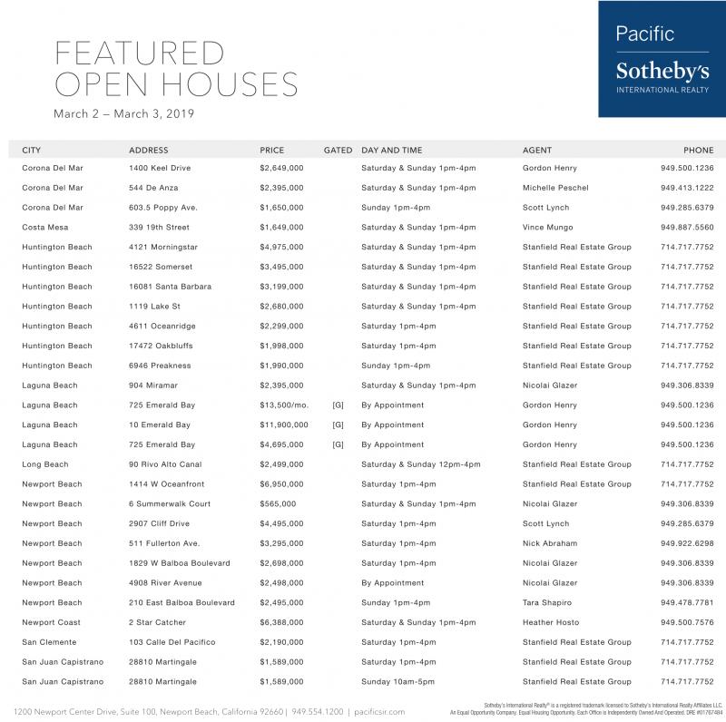 Newport Beach 1829 W Balboa Boulevard $2,698,000 Saturday 1pm-4pm Nicolai Glazer 949.306.8339