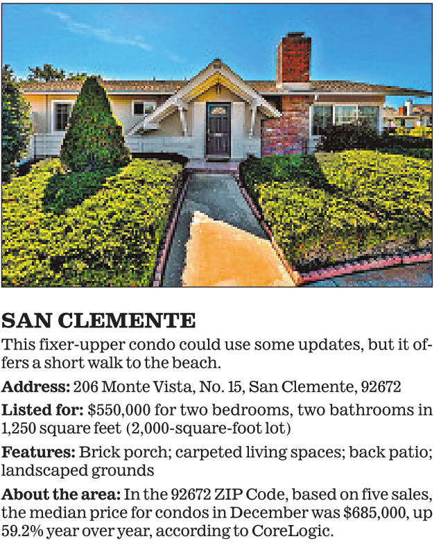 SAN CLEMENTE This fixer-upper condo could use some updates, but it offers a short walk to the beach.