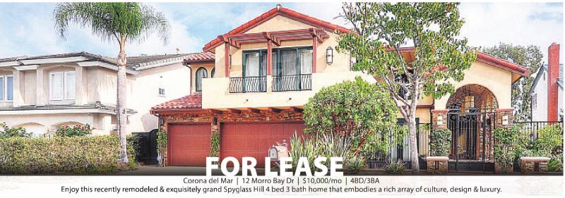 Corona del Mar | 12 Morro Bay Dr | $10,000/mo | 4BD/3BA Enjoy this recently remodeled & exquisitely grand Spyglass Hill 4 bed 3 bath home that embodies a rich array of culture, design & luxury.