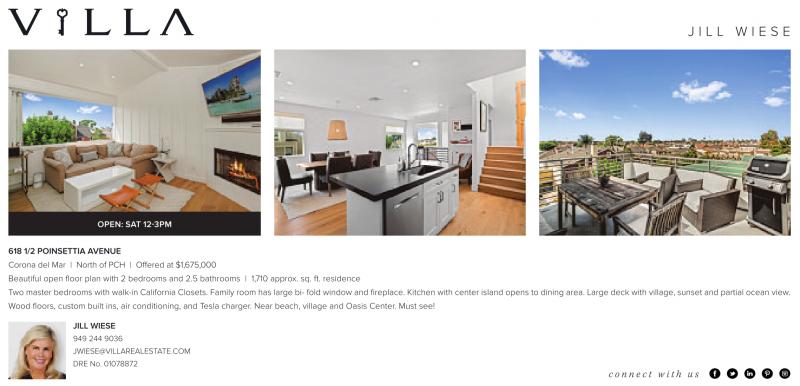 JILL WIESE 949 244 9036 JWIESE@VILLAREALESTATE.COM DRE No. 01078872