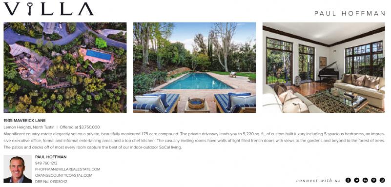 PAUL HOFFMAN 949 760 1212 PHOFFMAN@VILLAREALESTATE.COM ORANGECOUNTYCOASTAL.COM DRE No. 01308042