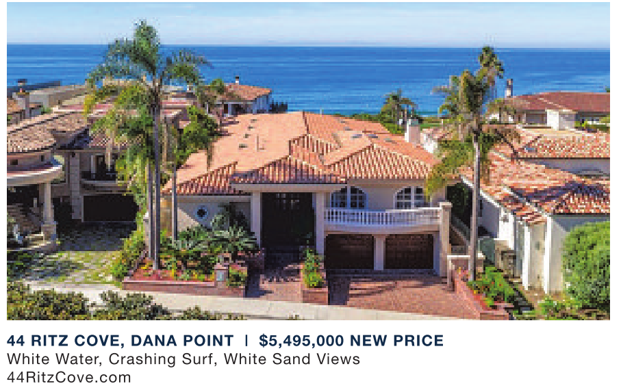 44 RITZ COVE, DANA POINT | $5,495,000 NEW PRICE White Water, Crashing Surf, White Sand Views 44RitzCove.com