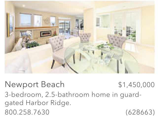 Newport Beach $1,450,000 3-bedroom, 2.5-bathroom home in guardgated Harbor Ridge.