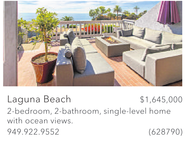Laguna Beach $1,645,000 2-bedroom, 2-bathroom, single-level home with ocean views.