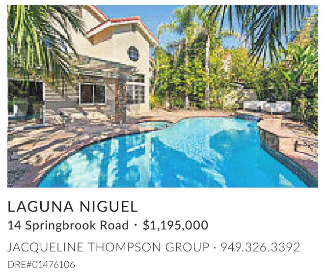 LAGUNA NIGUEL $1,195,000 JACQUELINE THOMPSON GROUP • 949.326.3