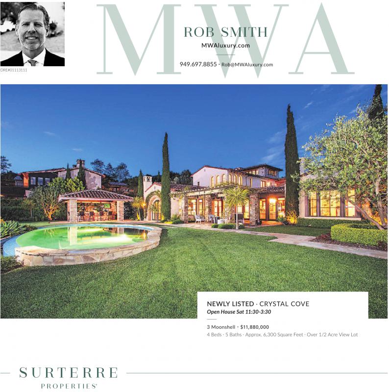 NEWLY LISTED CRYSTAL COVE Open House Sat 11:30-3:30