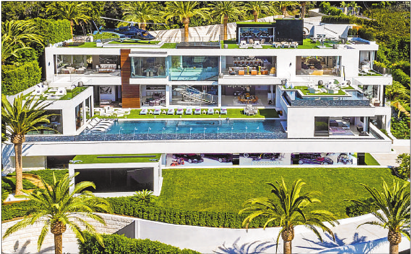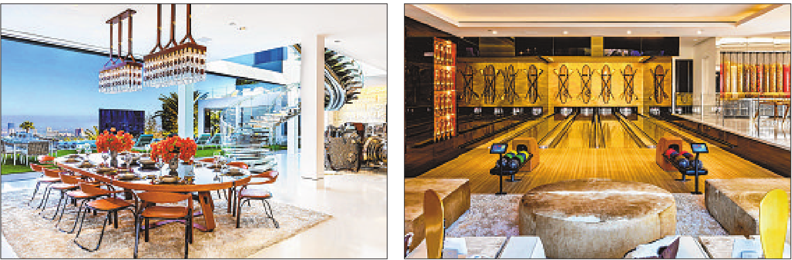 Jockeying for attention across 38,000 square feet are 12 bedrooms, 21 bathrooms, three kitchens, 130 artworks, a 40-seat movie theater, a$30-million fleet of exotic cars, two wine cellars stocked with champagne, a four-lane bowling alley and a candy room filled with towering cylinders of sweets.