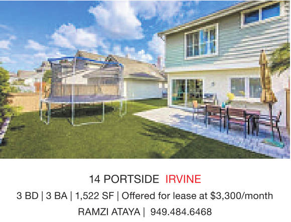 14 PORTSIDE IRVINE 3BD|3BA|1,522 SF |Offered for lease at$3,300/month RAMZI ATAYA | 949.484.6468